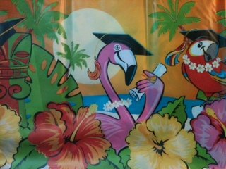 graduation caps along with the tropical décor and flowers. http://www.amazon.com/Graduation-Tablecover-Paradise-Supply-Tropical/dp/B0072X1D0E
